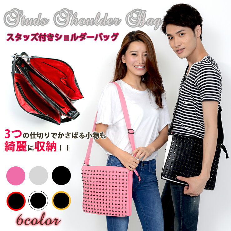 スーパーセール【送料無料】 スタッズ付きショルダーバッグ (全6色)ショルダーバッグ ショルダーバック BAG 高級感 黒 白 ブラック 小物 女性 レディース メンズ 斜めがけ かばん 斜めがけバッグ ブランド05P05Nov16