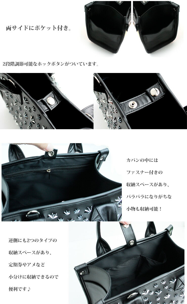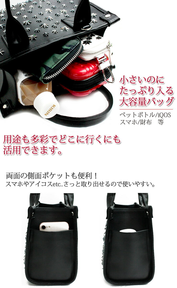 スタッズは痛くないスタッズを採用! ショルダー付きなので肩からかけることも可能! 収納力・機能性に優れており、誕生日プレゼントやちょっとしたプレゼントにも最適です♪