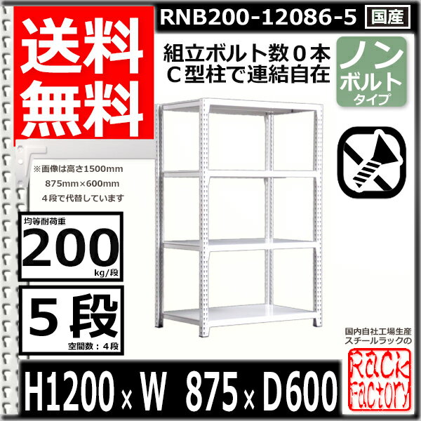 スチールラック 幅87×奥行60×高さ120cm 5段 耐荷重200/段 単体用(支柱4本) 幅87×D60×H120cm ボルト0本で組立やすい 中量棚 業務用 スチール棚 業務用 収納棚 整理棚 ラック