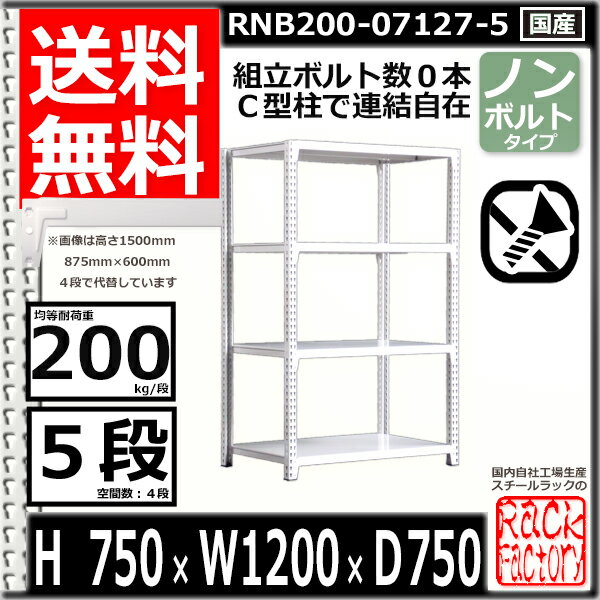 スチールラック 幅120×奥行75×高さ75cm 5段 耐荷重200/段 単体用(支柱4本) 幅120×D75×H75cm ボルト0本で組立やすい 中量棚 業務用 スチール棚 業務用 収納棚 整理棚 ラック